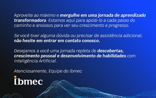 Av. Presidente Wilson, 118, Centro, Rio de Janeiro/RJ - CEP 20.030-020 | CNPJ: 04.298.309/0007-56 | Ibmec - Todos os direitos reservados ©