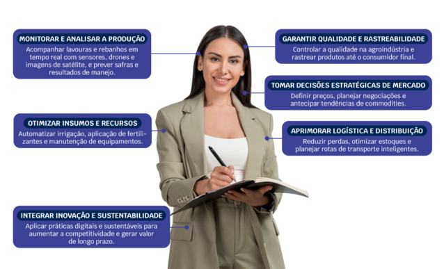 Prepare-se para aplicar IA na previsão de safras, manutenção preditiva de máquinas, rastreabilidade de alimentos e negociação estratégica de commodities.