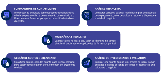 Neste programa, você vai explorar, de forma prática, como aplicar os principais conceitos financeiros em diversas áreas do negócio para tomar decisões mais assertivas.