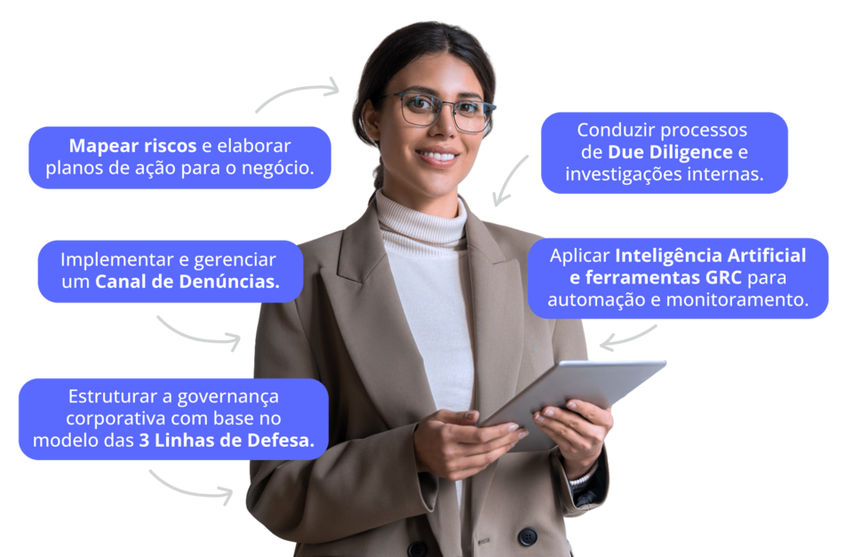 •IA Aplicada: utilize Inteligência Artificial para otimizar a triagem de denúncias, a revisão de políticas e a detecção de riscos, garantindo a governança da IA.