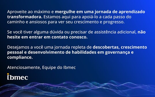 A Certificação em Governança e Compliance é um programa que oferece uma formação completa e prática, ministrada por executivos que atuam com governança e compliance, permitindo que você aprenda com os melhores.