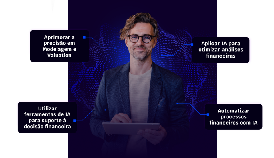 Por isso, construímos um programa onde você irá aprender I.A. do zero, com foco 100% em transformar você em um profissional de finanças apto para: