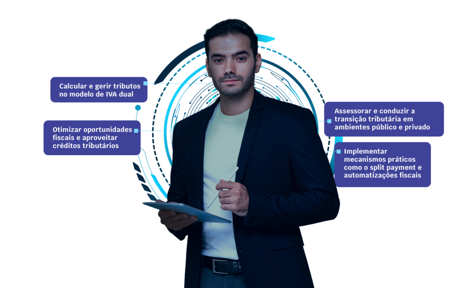 que orientam empresas e instituições durante a transição para o novo regime tributário. Esses especialistas precisam identificar riscos e oportunidades decorrentes da reforma para oferecer estratégias de planejamento tributário, compliance e minimização de contingências, especialmente em setores regulados como combustíveis, serviços financeiros e bens imóveis.